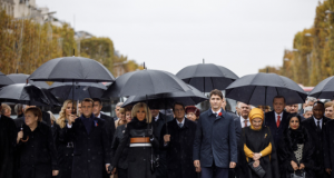 Mientras Trump faltó por lluvia, Trudeau se moja dando un emotivo...