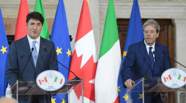 Los primeros ministros de Italia, Paolo Gentiloni, y Canadá, Justin Trudeau, afirmaron hoy (30 de mayo de 2017) la voluntad de ambos países de respetar y aplicar el Acuerdo de París (2015) contra el cambio climático, pese a las reticencias de Estados Unidos (EE.UU.). Así lo confirmaron ambos mandatarios en una rueda de prensa conjunta que mantuvieron en Villa Madama, sede representativa del ministerio italiano de Exteriores, al término del encuentro privado. El primer ministro italiano aprovechó la ocasión para sumarse a la petición realizada por la canciller alemana, Angela Merkel, que solicitó que los socios europeos tomen su destino en sus manos ras comprobar en los últimos días que «los tiempos en los que se podía confiar completamente en los otros han quedado atrás». «Italia comparte la necesidad de que los europeos asuman en sus manos su futuro, los desafíos globales lo exigen», sostuvo. Gentiloni reconoció que la Unión Europea (UE) respeta y considera esenciales «relaciones transatláticas y con Estados Unidos» pero matizó que estos lazos «no pueden hacernos renunciar a principios fundamentales como nuestro esfuerzo contra el cambio climático» o a la defensa de un «comercio internacional y libre». Así, subrayó que Italia mantiene «su apoyo al Acuerdo de París», del que no tiene intención de retirase. De la misma opinión fue el primer ministro canadiense quien insistió en que ambos mandatarios defienden su «compromiso en la lucha contra el cambio climático». «Como líderes internacionales tenemos que hacer todo lo que esté en nuestras manos para que nuestras economías sean verdes y limpias», afirmó Trudeau. El mandatario canadiense participó los pasados 26 y 27 de mayo en la reunión del Grupo de los Siete países más industrializados del mundo (Estados Unidos, Italia, Alemania, Francia, Reino Unido, Canadá y Japón) celebrada en Taormina (sur) y después ha alargado su presencia en Italia para reunirse por primera vez con el papa Francisco y mantener encuentros con autoridades del país. En su primera visita como primer ministro de Canadá a Italia, Trudeau ha realizado un llamamiento a la comunidad internacional para que los países trabajen «juntos en favor de condiciones que son beneficiosas para todos, también para Estados Unidos». Opinó que «la única solución para seguir avanzando hacia adelante es proteger el medioambiente para crear puestos de trabajo verdes y dignos para todos». Además del cambio climático, también conversaron sobre otros temas como seguridad internacional, lucha contra el terrorismo, libre mercado y la defensa de los intercambio comerciales internacionales y sobre el drama de los refugiados, asuntos en los que las posturas de Italia y Canadá coinciden, confirmó Gentiloni.